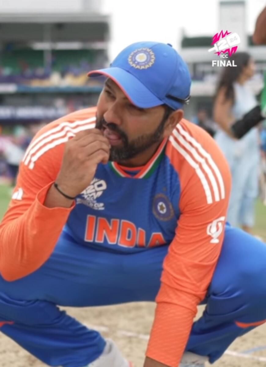 T20 Dünya Kupası’nı kazandıktan ve T20İ kriketinden emekli olduğunu açıkladıktan sonra, Hindistan kaptanı Rohit Sharma sahadan kum yedi Kensington Ovali içinde Barbados.
