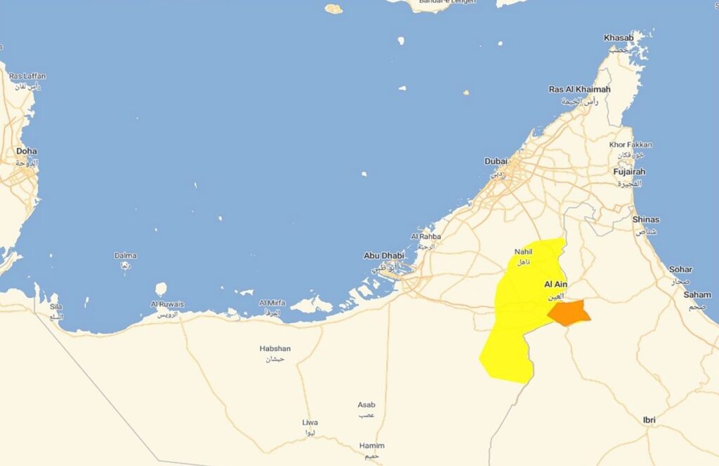 Ülkenin met departmanı olan Ulusal Meteoroloji Merkezi (NCM), Al Ain ve çevresindeki yağışlarla ilişkili konvektif bulut oluşumu için turuncu ve sarı uyarılar yayınladı.