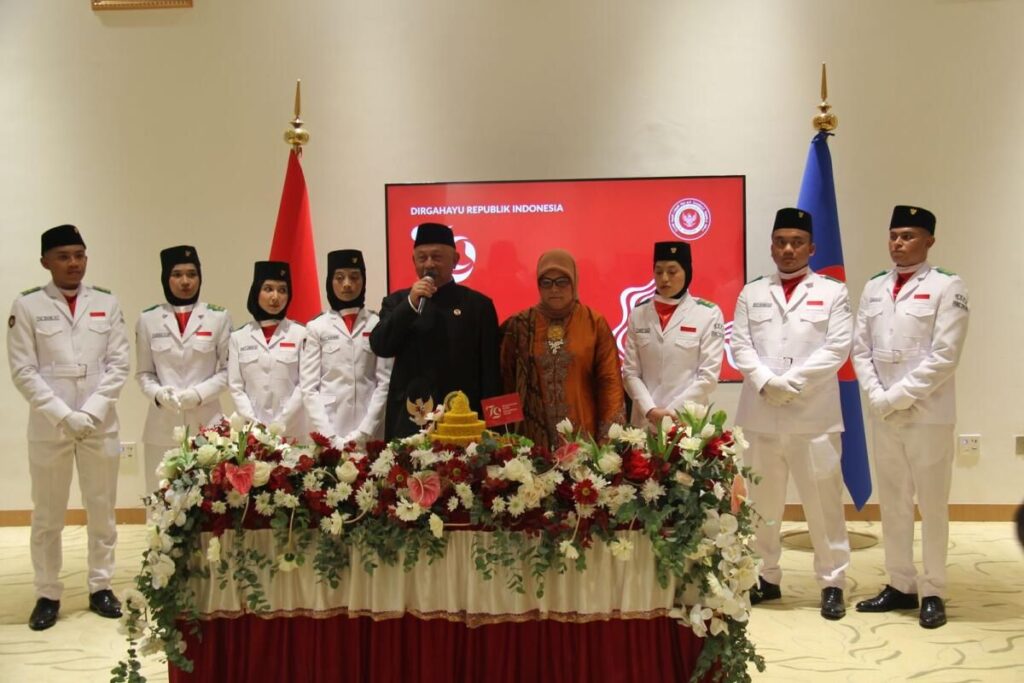 Yüzlerce Endonezyalı gurbetçi, zengin kültürel miraslarını geleneksel kıyafetlerle sergileyen 79. Endonezya Bağımsızlık Günü’nü kutlamak için Abu Dabi’deki büyükelçilikte toplandı.Kavurucu güneşe göğüs geren topluluk üyeleri, dört dişiden oluşan yedi üyeli ‘Paskibra’ birliğinin önderlik ettiği bayrak kaldırma törenine katıldı. Paskibra, Endonezya’daki bayrak kaldırma törenlerinden sorumlu özel bir gruptur.En son haberlerden haberdar olun. WhatsApp Kanallarında kt’yi takip edin.