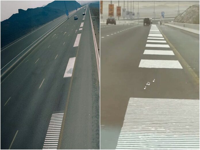Araba tekerlekleri, BAE ve Arap Dünyasında türünün ilk örneği olan Şeyh Halife Caddesi’ndeki Beethoven’ın Dokuzuncu Senfonisinden melodiler çalıyor.