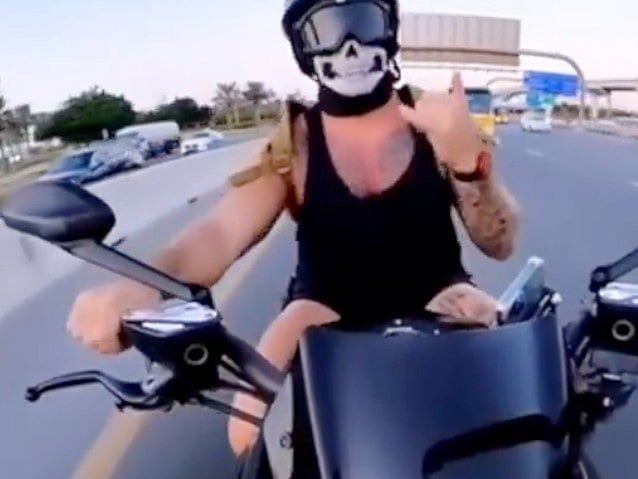 Dubai Polisi, maskeli sürücünün tehlikeli yüksek hızlarda sürerken ve dublör yaparken görüldüğü, hatta zaman zaman gidonu tamamen terk ederek kendi hayatını ve başkalarının hayatını riske attığı kısa bir klip paylaştı.