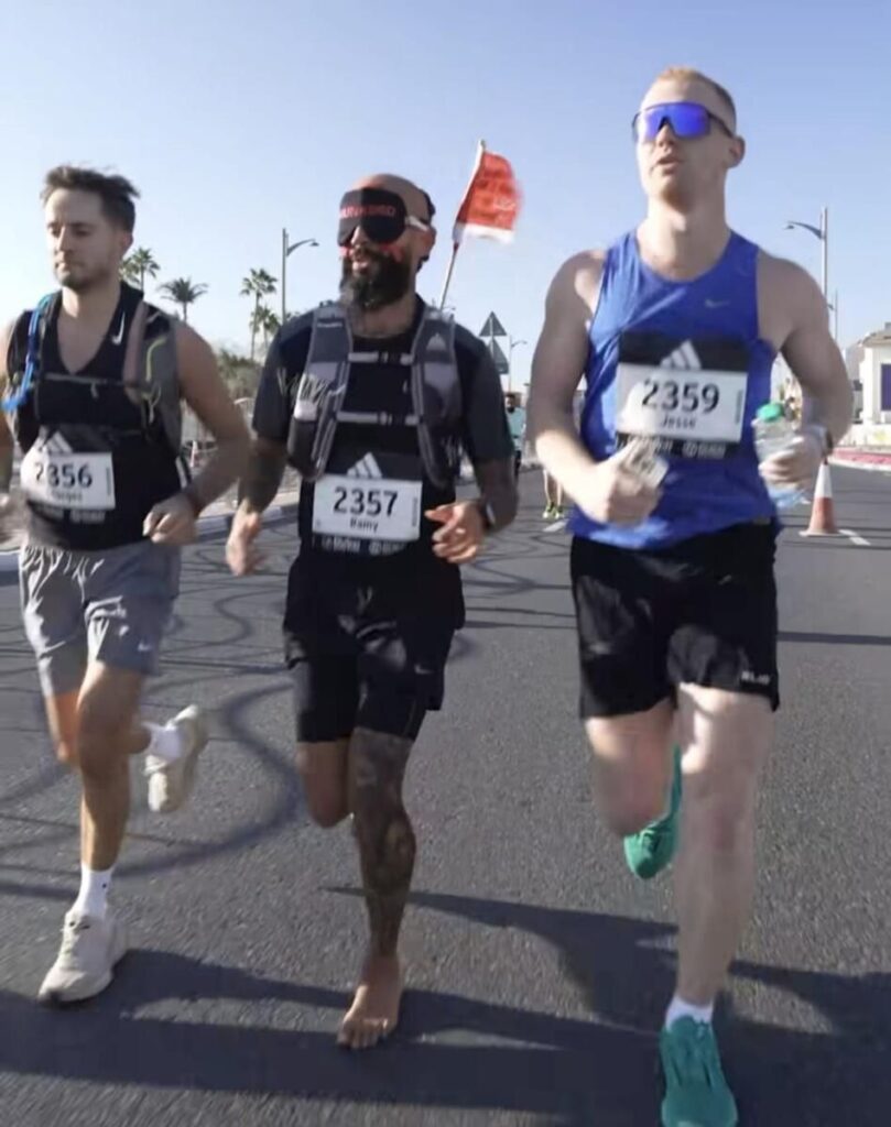 Sporcu, elden önce çok az antrenman yaparak basitçe “fikrine inanmaya ve bırakmaya” karar verdi.Ramy’nin gözü kapalı ve ayakkabısız koşma kararının arkasındaki sebep? Aynı zamanda kanserden kurtulan 33 yaşındaki “Şu anda hayat ne kadar karanlık olursa olsun tünelin sonunda her zaman ışığın nasıl olacağı kavramını vurgulamak istedim” dedi.