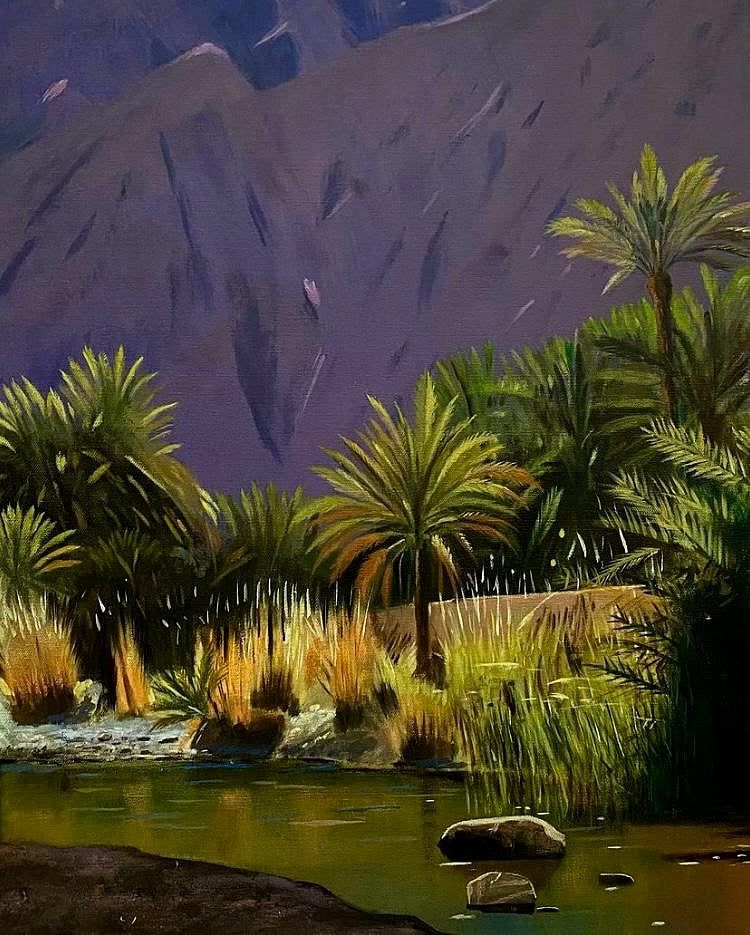 Çalışmaları, karmaşık ayrıntılara dikkat ederek günde yaklaşık sekiz saat ayırdığı Emirlikler’in doğasına ve manzaralarına odaklanan tuval üzerine yağlı boyamayı içeriyor. Her biri, boyutuna ve ayrıntılarına bağlı olarak 50 ila 200 saat sürer.