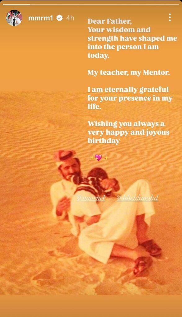 Bu arada Şeyha Maitha bint Muhammed bin Rashid Al Maktoum, İnstagram Hikayeleri aracılığıyla babasına dokunaklı bir doğum günü mesajı göndererek şunları yazdı::