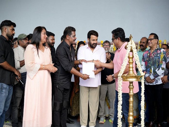 Enstantanelerde Mohanlal, filmin bir fıçı tahtası tutarken görüldü, ardından geleneksel lamba aydınlatması ve filmin kadrosu ve ekibiyle birlikte pooja izledi.