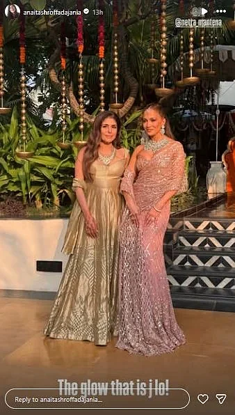 Lopez, performansından önce düğün töreni için güzel bir sari giyerek ziyaretine etnik bir dokunuş kattı. İmza karizmasıyla şarkıcı, Manish Malhotra’nın raflarından gül altın tonlarında süslenmiş bir sari giymişti. Kıyafeti aynı etiketteki eşleşen bir bluz ve zümrüt takılarla eşleştirdi.
