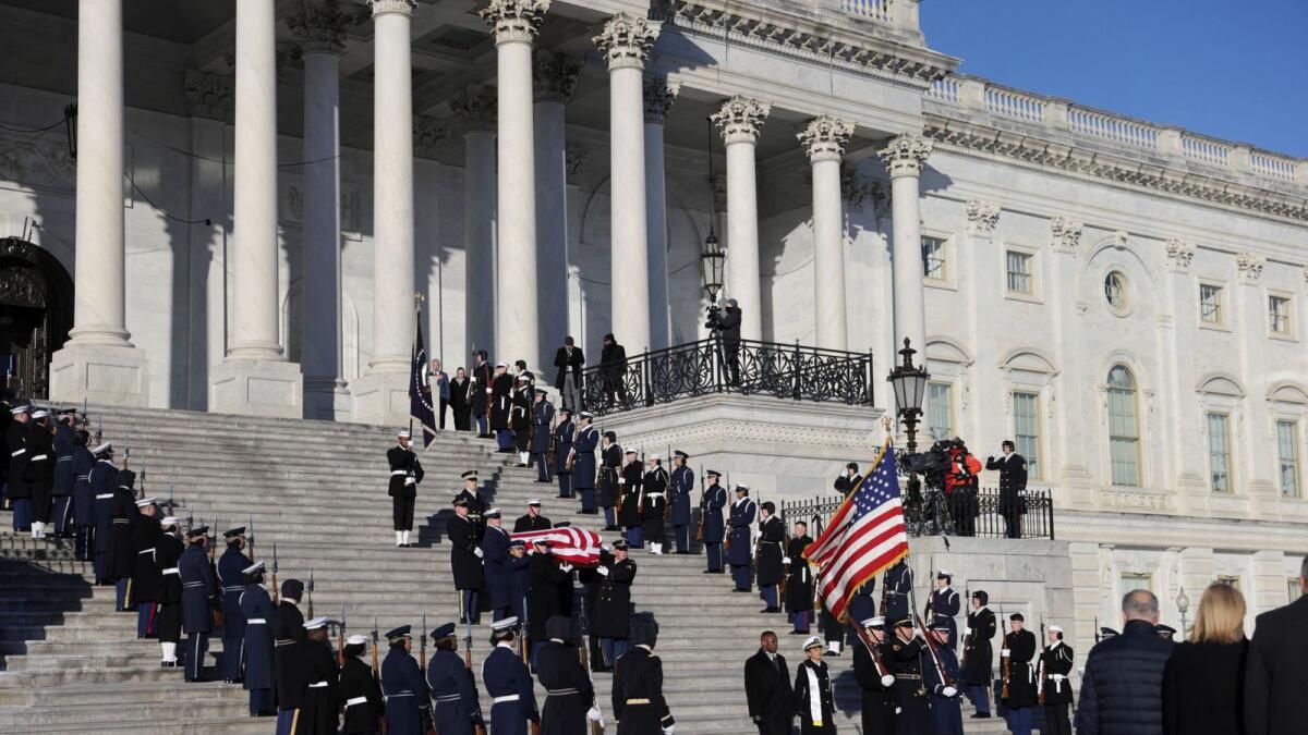 Perşembe sabahı, bir askeri şeref muhafızı Carter’ın bayraklı tabutunu Başkentten Washington Ulusal Katedrali’ne doğru taşıdı.