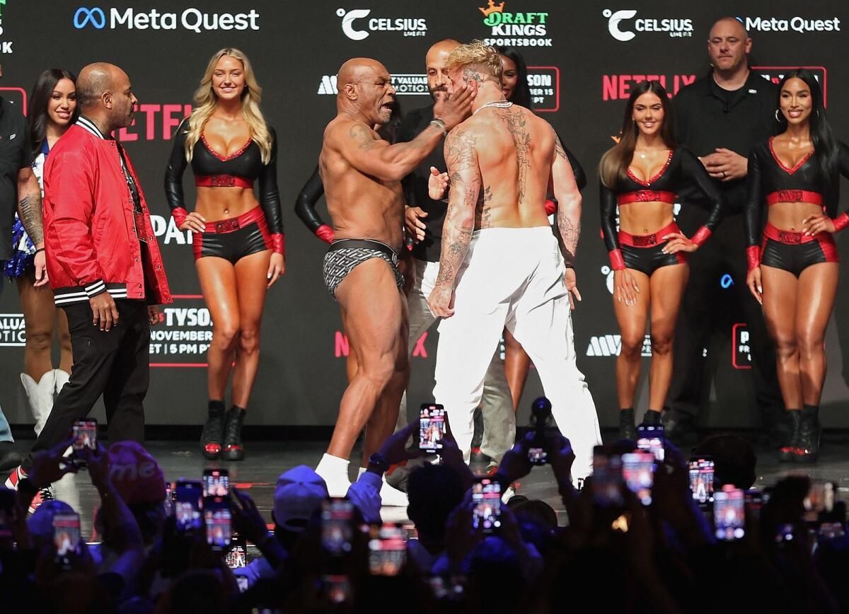 Eski ağır siklet şampiyonu Mike Tyson, iki adam tartışmalı Netflix destekli maçları öncesinde Perşembe günü son kez karşı karşıya geldiklerinde rakibi Jake Paul’u tokatladı.
