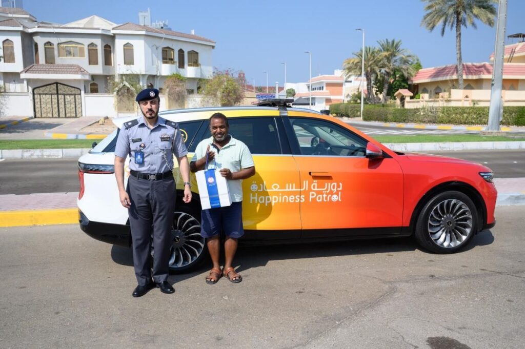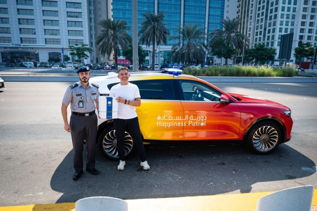 Başkentin otoyollarını, sokaklarını ve mahallelerini kuzeyden güneye devriye gezen iki Abu Dabi polisi, sürücüleri cezalandırmak için değil, ödüllendirmek için gözetimdeydi.Binbaşı Khaled Al Dhaheri ve birinci emir subayı Omar Al Shehhi Pazartesi sabahı düzenli bir Trafik Mutluluğu Devriyesindeydiler ve iyi sürüş belirtileri aradılar.Festival renkleri ve gülen yüzlerle süslenmiş BAE yapımı bir Rabdan 4×4 kullanan araç, yanıp sönen mavi ve kırmızı ışıklar yanana kadar tipik bir polis arabasına benziyordu. O zaman bile, birçok yol kullanıcısı şüpheci görünüyordu.Havaalanı Yolunda ilerlerken, memurlar bir taksi fark ettiler ve onu kenara çekmeye karar verdiler. Havai polis ışıklarını yaktıktan sonra sürücüyü birkaç metre takip ettiler, ancak taksi sürmeye devam etti.“Sürücülerin onları takip etmeye başladığımızda kafalarının karışması oldukça sık oluyor ve hemen durmuyorlar.”
