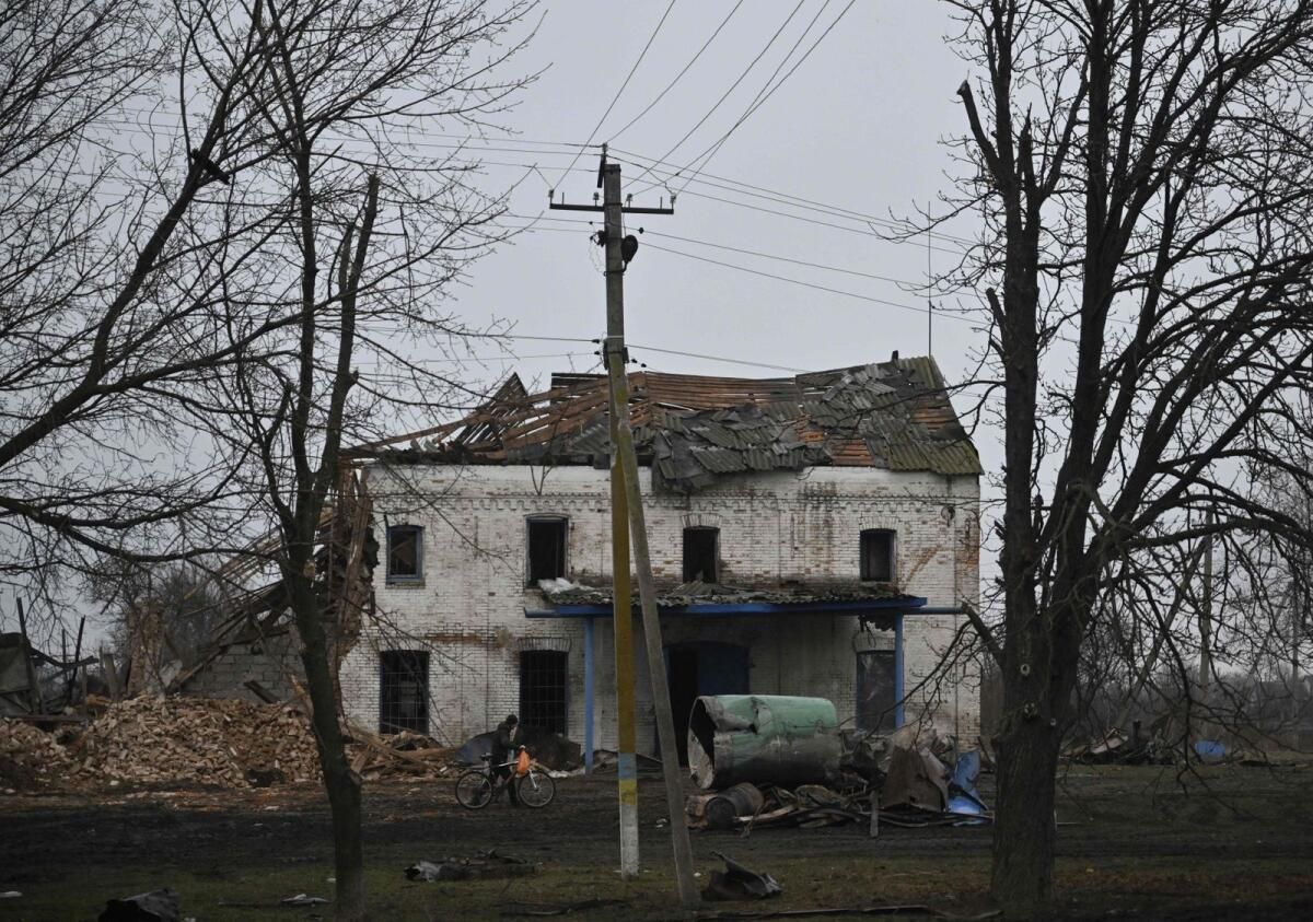 Rudokvas’ın Novopavlivka köyündeki dükkanının hemen yanındaki restoran, yakın zamanda yapılan bir bombardımanla yerle bir edildi, ancak saati hala tıkalı olan çökmekte olan bir duvar tutuldu.