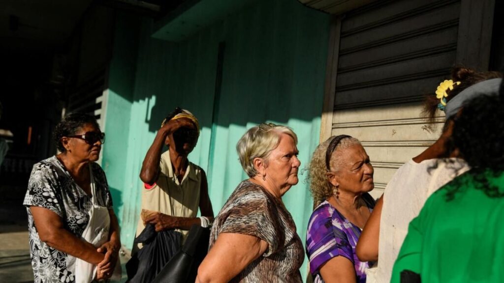 Küba’nın Havana kentinde kadınlar bir bankanın önünde bekliyor. reuters