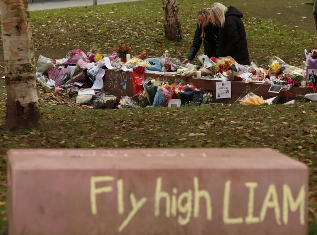 İnsanlar 21 Ekim 2024’te Manchester, İngiltere’deki eski One Direction şarkıcısı Liam Payne’in anısına verilen çiçeklere ve haraçlara bakıyorlar. Reuters dosyası