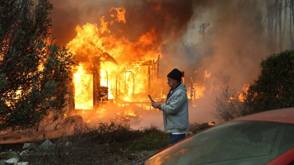 Çarşamba günü Kaliforniya, Altadena’daki Eaton Yangını sırasında yanan bir evin önünden bir kişi geçiyor. Afp’nin
