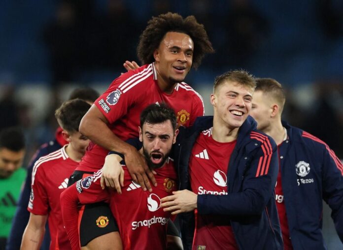 Manchester United, Premier Lig şampiyonu Manchester City’nin krizini Pazar günü Etihad’da 2-1 galibiyetle derinleştirmek için son üç dakikada iki gol attı.City şimdi son 11 maçında sadece bir kez kazandı, bu da sekiz mağlubiyet içeren bir koşu.Josko Gvardiol’ün ilk yarı kafa vuruşu Pep Guardiola’nın adamlarını öne geçirmişti.Ancak United, geçen ay göreve geldiğinden bu yana beş lig maçında Ruben Amorim’in ikinci galibiyetine karşılık verdi.Bruno Fernandes’in cezası, normal sürenin son dakikasında Amad Diallo galibini dar açıdan eve sıkıştırmadan önce eşitlendi.