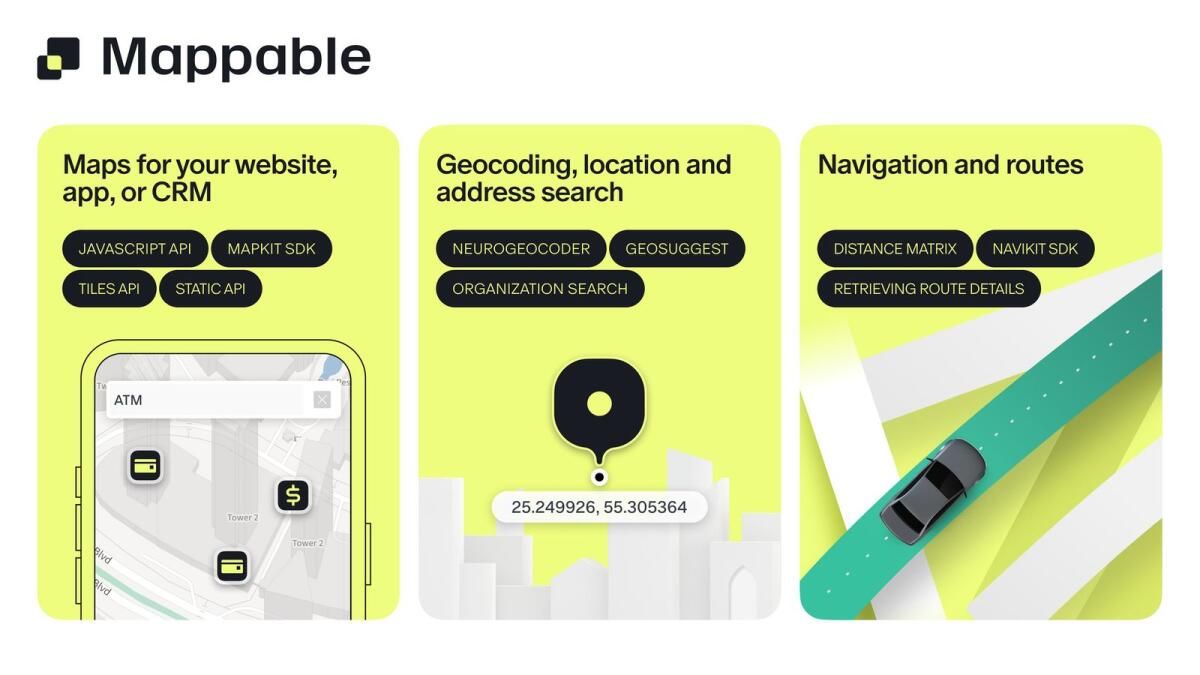 Mappable, Neurogeocoder API’sine ek olarak, birden fazla iş ihtiyacına göre uyarlanmış kapsamlı bir çözüm paketi sunar: