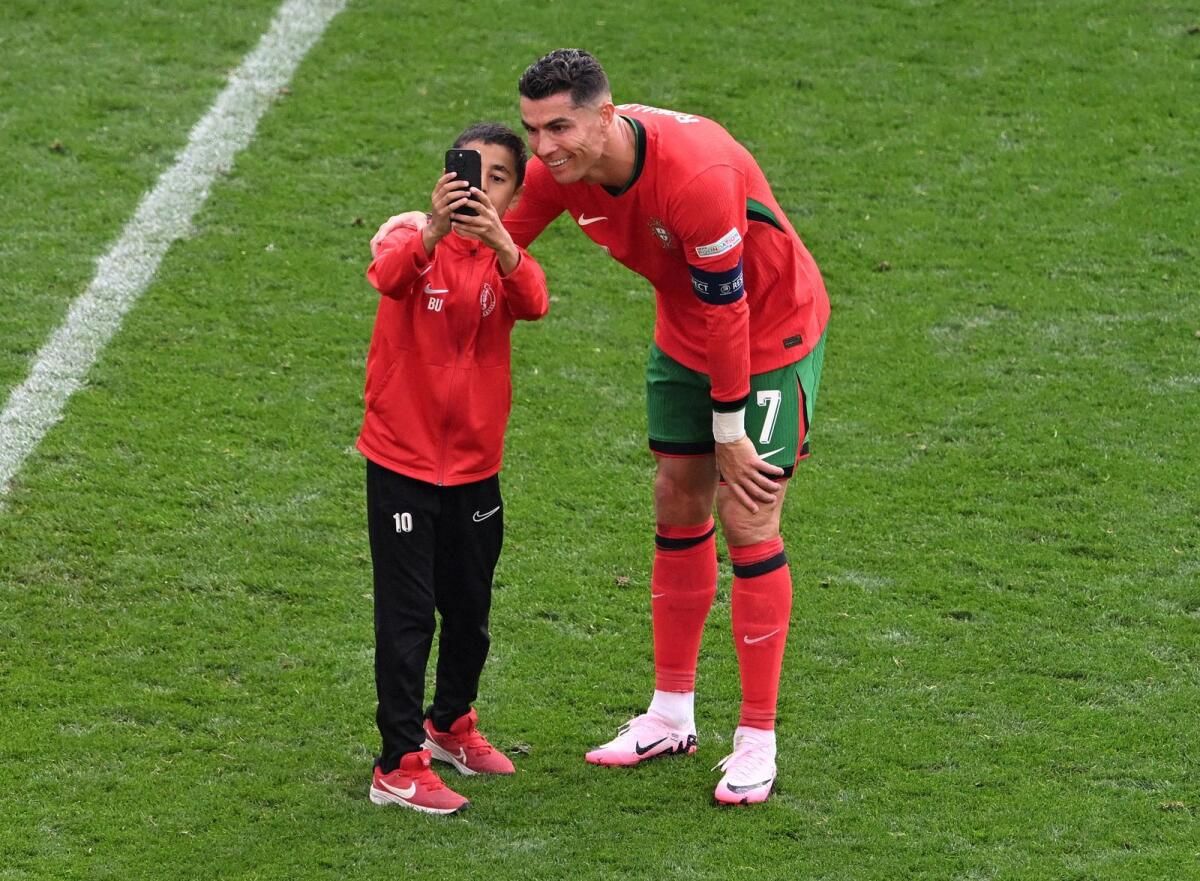 Portekizli kaptan Ronaldo, oynamak için yaklaşık 20 dakikası kalan genç bir çocukla selfie için poz verdi, ancak diğer beş kişi daha sonra gözle görülür derecede mutsuz bir Ronaldo ile fotoğraf çekmek için sahaya çıktı.