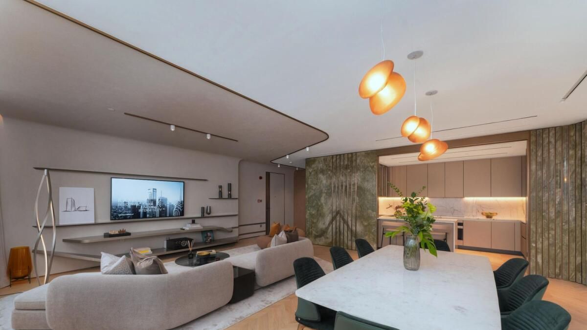 İKONİK Tower show flat, mered’in lüks dairelerinin zarafetini ve üst düzey tarzını yansıtıyor. Her rezidans, sakin ve sofistike bir his yaratmak için doğal malzemeler, zarif yüzeyler ve katmanlı aydınlatma kullanarak geniş manzaraları vurgulamak üzere tasarlanmıştır. Yaşam alanları yeşil mermer duvarlara ve odaları doğal ışıkla dolduran açık düzenlere sahipken, ana süitler alanları aydınlık ve özel tutmak için cam bölmeler kullanır.
