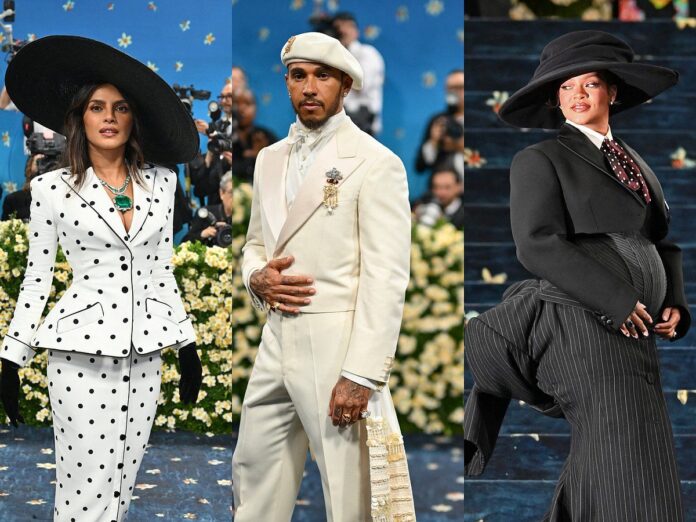 Modanın kayan yazı etkinliğinin eş başkanlarından ikisi olan Oscar adayı aktör Colman Domingo ve Formula 1 pilotu Lewis Hamilton, Vogue’un genel yayın yönetmeni gala supremo Anna Wintour ile birlikte ilk gelenler arasındaydı.