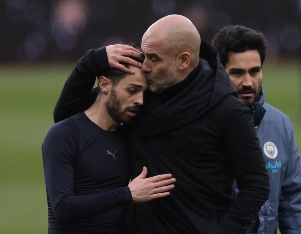 Manchester City teknik direktörü Pep Guardiola ve Bernardo Silva, Aston Villa ile oynanan maçtan sonra üzgün görünüyorlar. – Reuters