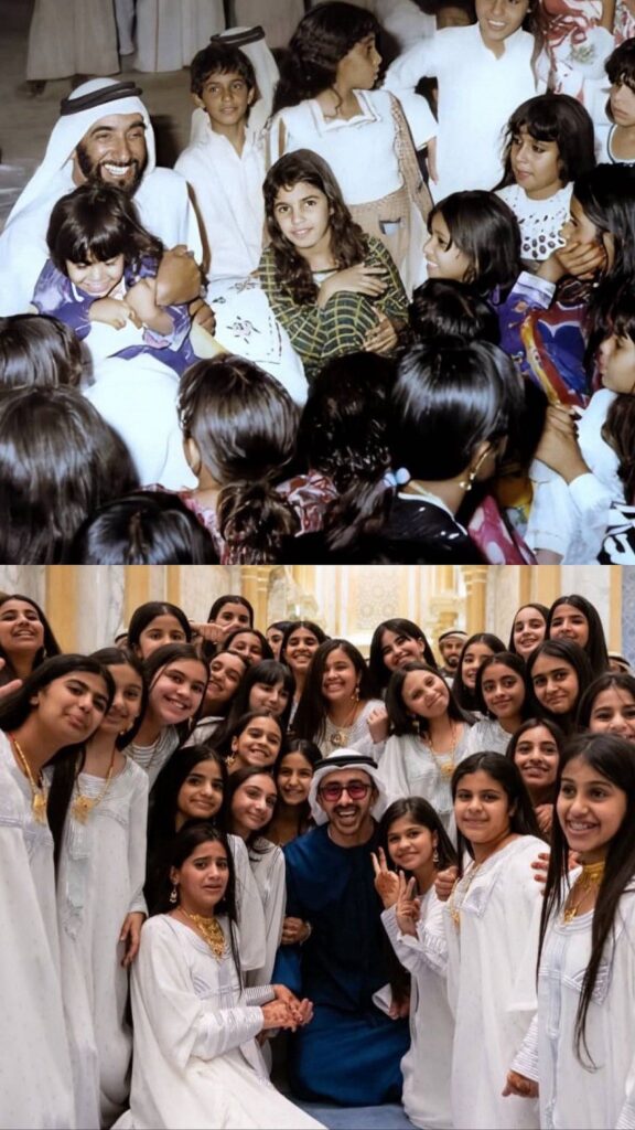 Sosyal medyada bir kolaj viral hale geliyor. Kolajda biri BAE’nin kurucu babası Şeyh Zayed bin Sultan Al Nahyan ile Al Ayyala dansçılarını, diğeri 15 Mayıs’tan itibaren Dışişleri Bakanı Şeyh Abdullah bin Zayed Al Nahyan’ın yanında gülümseyen genç kızları gösteren iki resim yer alıyor. Aşağıdaki resme bir göz atın:
