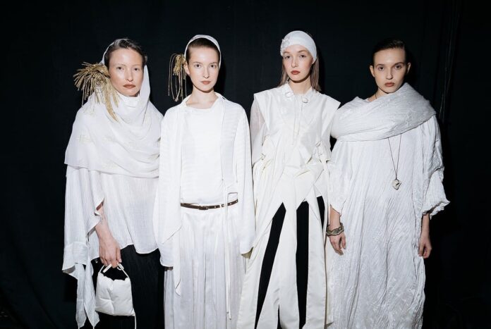 Dağıstan mirasına sahip bir marka olan Moskova merkezli Zuhat, yumuşak pastel tonları içeren alışılmadık renk paletlerini denedi. Koleksiyon, kadınlık ve zarafet duygusunu korurken katmanlama ve yapısöküm tekniklerini kullanarak geleneği ve modernliği dengeledi.