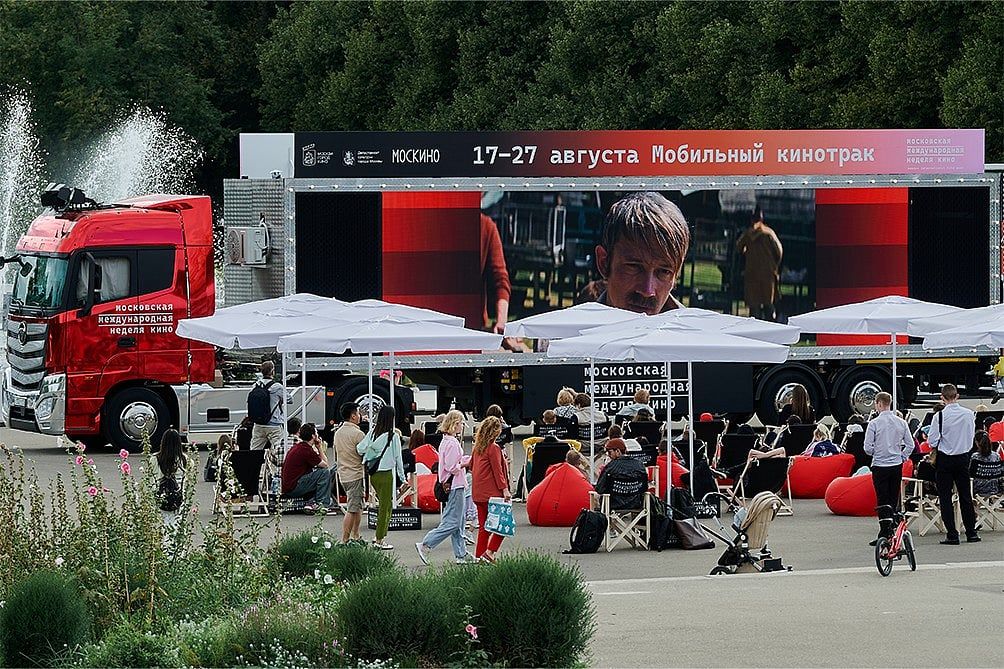 Moskova Uluslararası Film Haftası kapsamında 17-27 Ağustos tarihleri arasında şehir, gövdesine yerleştirilmiş geniş ekranlı ilk mobil sinema kamyonuna ev sahipliği yapacak ve filmlerin sadece geceleri değil, aynı zamanda film gösterimi sırasında da gösterilmesini sağlayacak. gün. İkonik kentsel alanlara seyahat edecek ve tam teşekküllü bir açık hava sinemasına dönüşecek.