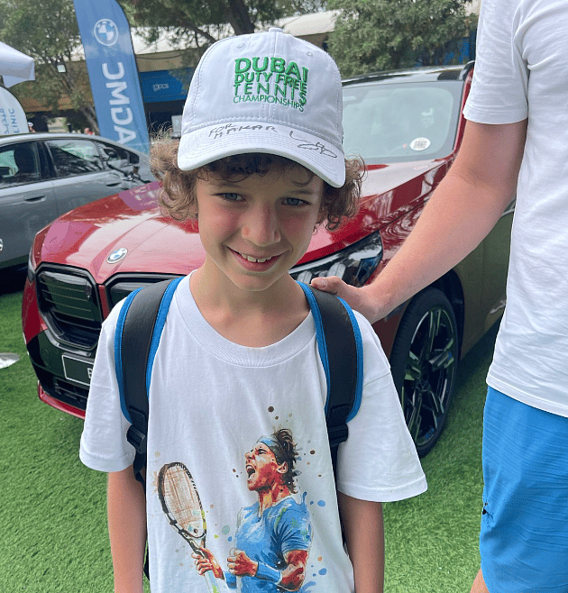 Dubai Eye 103.8FM, turnuva organizatörleri ve ATP yetkililerinin perde arkasındaki işbirlikçi çabaları, genç çocuğun eli boş bırakmamasını sağladı ve büyük vurucu vatandaşından değerli şapkasına kalemle yazılmış kişiselleştirilmiş bir mesaj aldı.