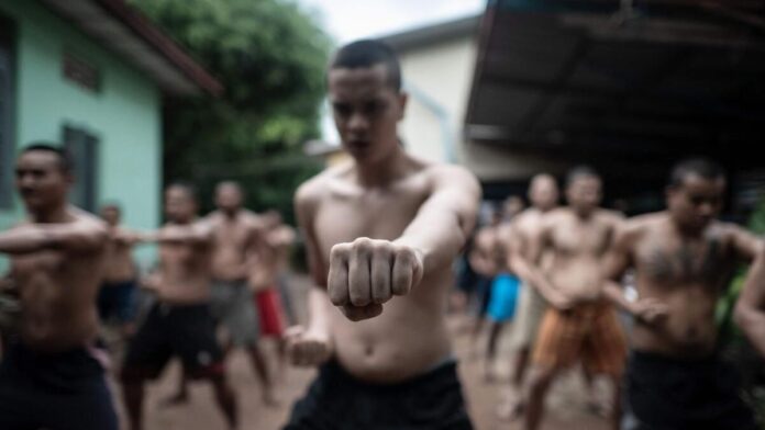 Yüzden fazla traşlı adam, bir gün halter, karate tatbikatları, dans ve Budist duası — uyuşturucu rehabilitasyonu, Myanmar tarzı için sabah 6 civarında Yangon pansiyonlarından dökülüyor.