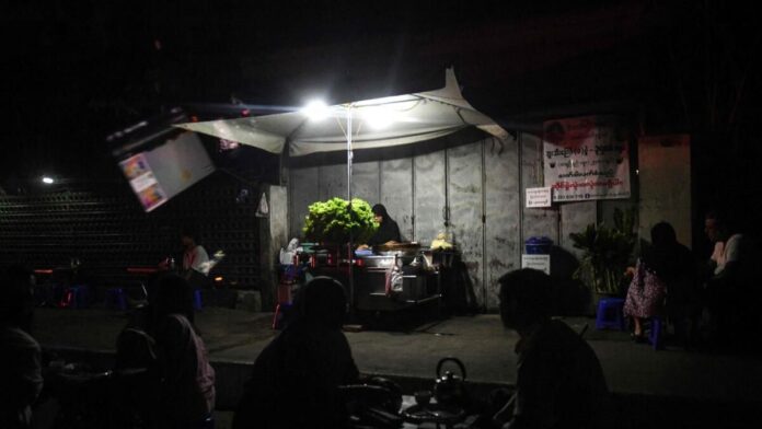 Kasabasında, isyancı gruplar tarafından ele geçirilen bölgelerin kontrolü için savaşırken cunta hükümeti tarafından planlanan elektrik kesintilerinin bir sonucu olarak elektrik kesintileri yaygındır.