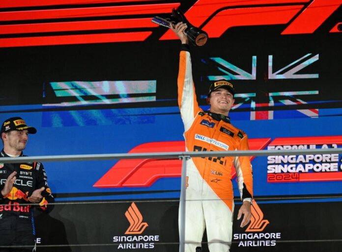Mclaren’den Lando Norris, Pazar günü baştan sona Singapur Grand Prix’sine hakim oldu ve Max Verstappen’in Formula 1 şampiyonası liderliğinden bir parça daha çıkardı.