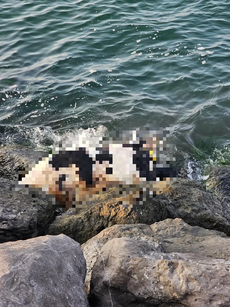 Plaj müdavimleri, Cumartesi günü Dubai’deki Mamzar Beach Park’ın kayalıklarında (riprap) yıkanmış ölü bir inek bulduktan sonra şok oldular.