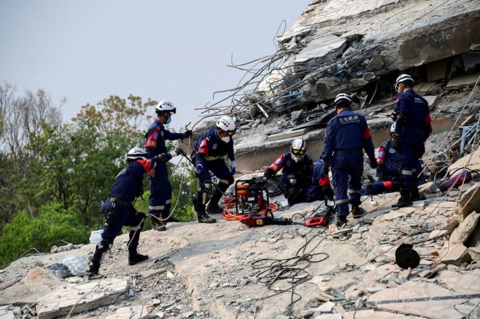 Çin’in devlet yayıncısı CCTV tarafından çekilen görüntülerde, kırmızı miğferli Çinli kurtarma ekipleri, Mandalay’daki bir apartmanda parçalanmış beton ve bükülmüş metal yığınları arasından metalik bir termal battaniyeye sarılmış bir kurtulanı taşıdı.
