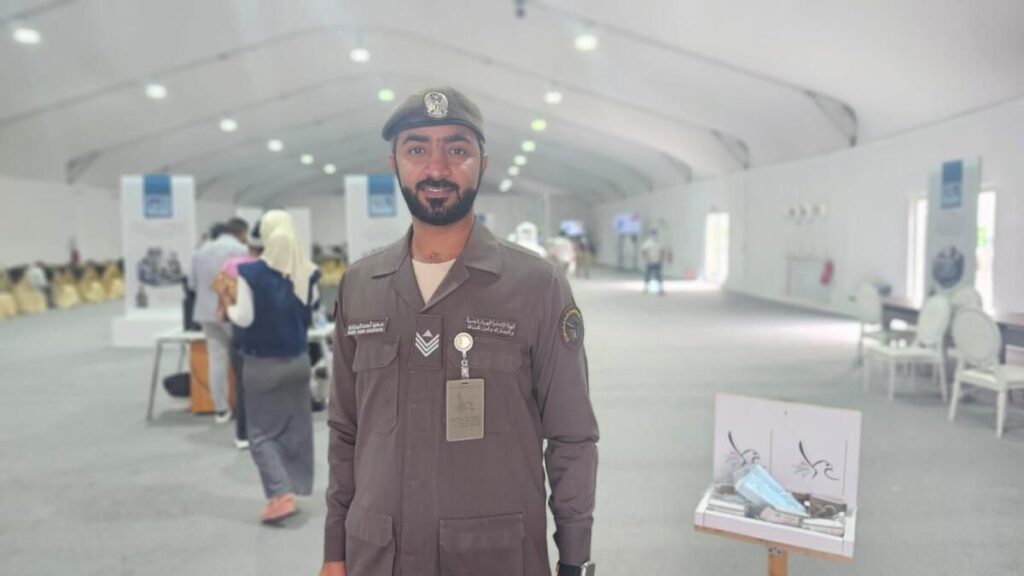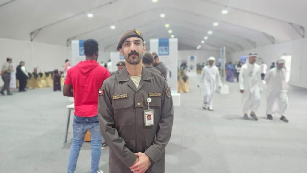 Benzer şekilde, İlk Çavuş Saeed Muhammed Ahmed Salem Al Badwawi de zamanını GDRFA çadırında fazla kalanları desteklemeye adamıştır.Al Khatib gibi, Al Badwawi de gönüllü çalışmasıyla resmi sorumluluklarını yerine getiriyor. “Buradaki rutinimiz, fazla kalanları organize etmeyi, yönlendirmeyi ve desteklemeyi içeriyor” dedi. “Herhangi bir sorun ortaya çıkarsa, onları uygun makamlara bağlar ve tatmin olmalarını sağlamak için endişelerini çözeriz.”