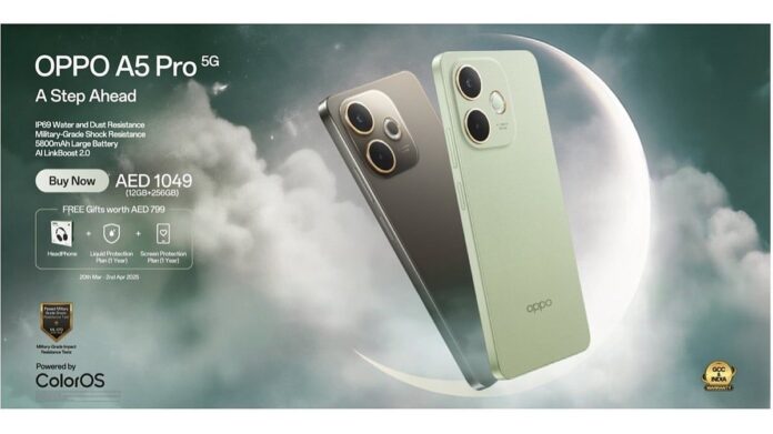 OPPO, olağanüstü dayanıklılığı ve gelişmiş AI yetenekleri ile popüler A Serisinin evriminde önemli bir kilometre taşını temsil eden ve güvenilir bağlantı için AI LinkBoost, sorunsuz oyun için AI GameBoost, amiral gemisi özelliği ile BAE’de merakla beklenen A5 Pro’yu piyasaya sürdü-sınıf AI özellikleri ve Flaş Şarjı ile çalışan 5.800mAh büyük pil, OPPO A5 Pro, açık hava maceraları, oyun ve eğlence için güvenilir ve uzun ömürlü akıllı deneyimler sunar.