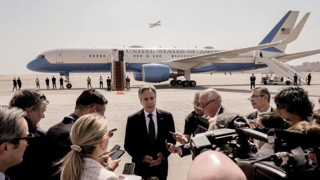 Antony Blinken, Kahire havaalanında Mısır Cumhurbaşkanı Abdel Fattah Al Sisi ile görüştükten sonra medyaya konuştu. — Fotoğraf: Reuters