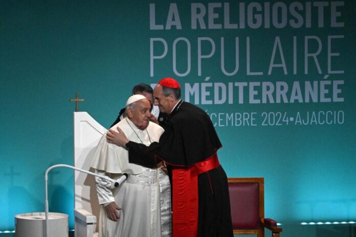 Papa Francis, Pazar günü Katolik rahipleri siyasi bölünmeleri körükleyen ruhani gruplara karşı korunmaya çağırdı ve bir papazın Fransız Akdeniz adasına ilk ziyareti olan Korsika’ya yaptığı bir günlük ziyarette konuştu.