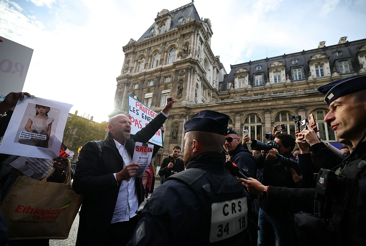 Çevrimiçi hızlı moda perakendecisi, düşük maliyetli iş modeline yönelik sert eleştirilerin ortasında ilk mağazasını açarken Çarşamba günü bir Paris mağazasının önünde “Shein’e Utanç” pankartları taşıyan protestocular toplandı.