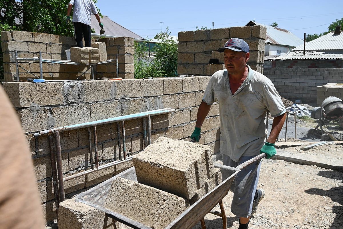 Sıradan bir şantiye gibi görünebilir ama Akmatbek Uraimov’un Kırgızistan’daki yeni evi pirinç bloklarıyla inşa ediliyor.