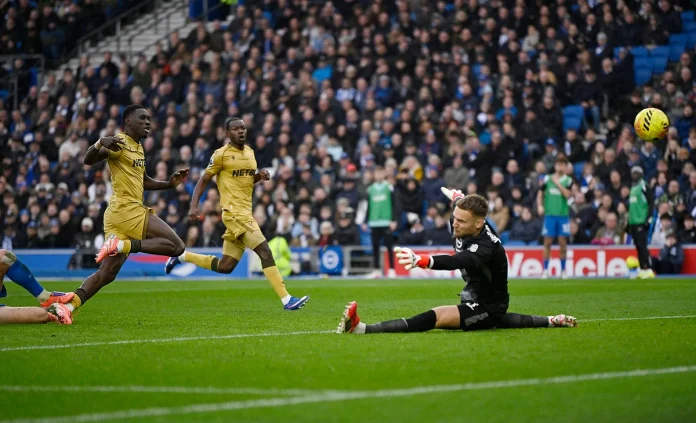 Sarr sonra tarzında Brighton kaleci Bart Verbruggen ötesinde bir atış ile bitirdi.