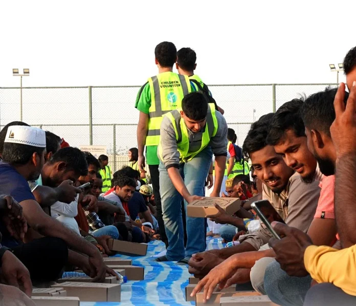 Yaklaşık iki hafta içinde, Emirlikler’deki çeşitli okullardan çocuklar akşamlarını çalışma kamplarında geçirecek ve işçilere iftar yemekleri düzenlemeye ve dağıtmaya yardımcı olacaklar.