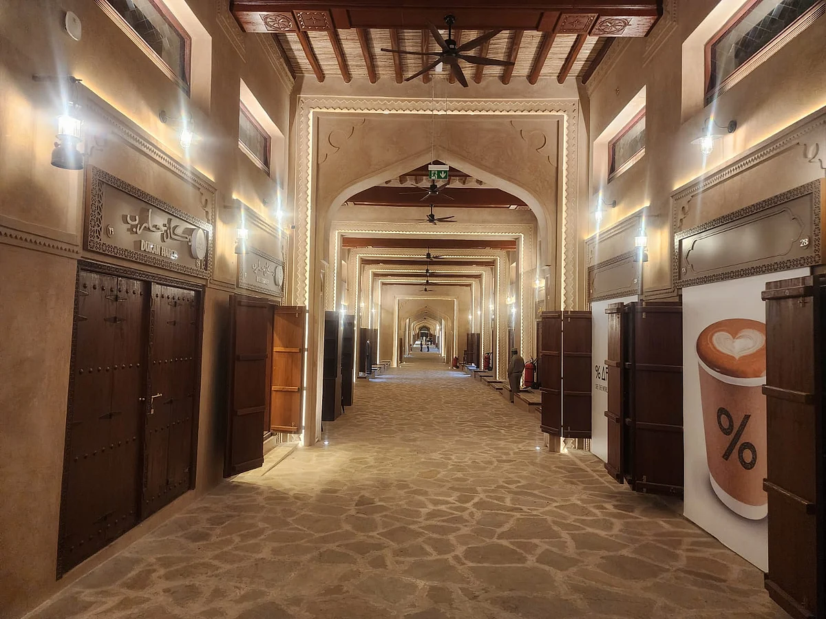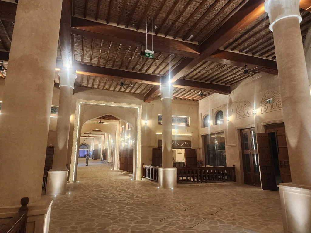 Modern bir alışveriş merkezine benzemiyor. Bunun yerine, eski Emirlik ticaret kasabalarında hayal ettiğiniz türden, özenle restore edilmiş geleneksel bir pazara adım atmak gibi geliyor.