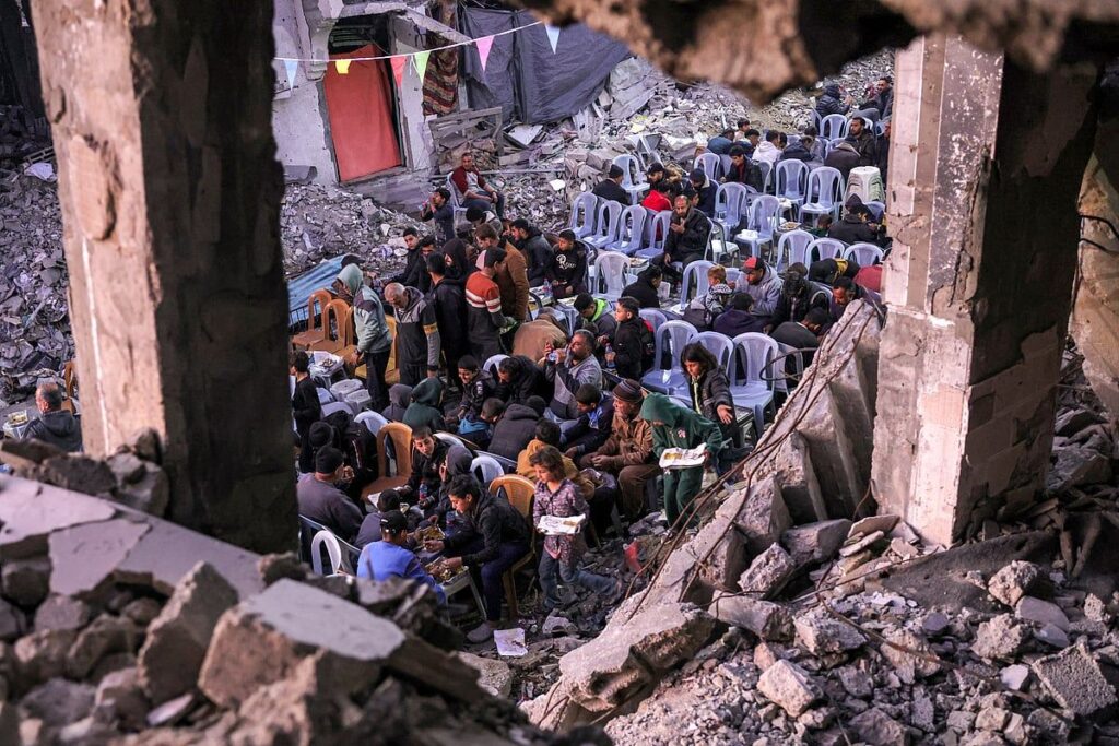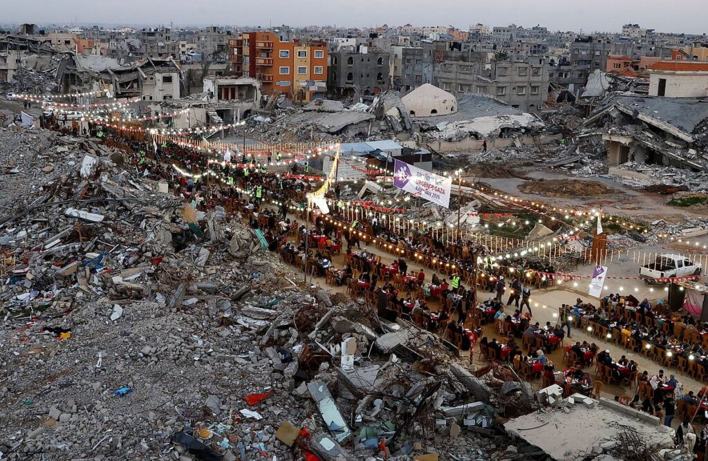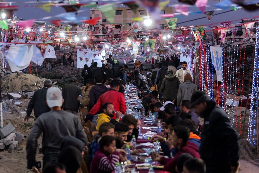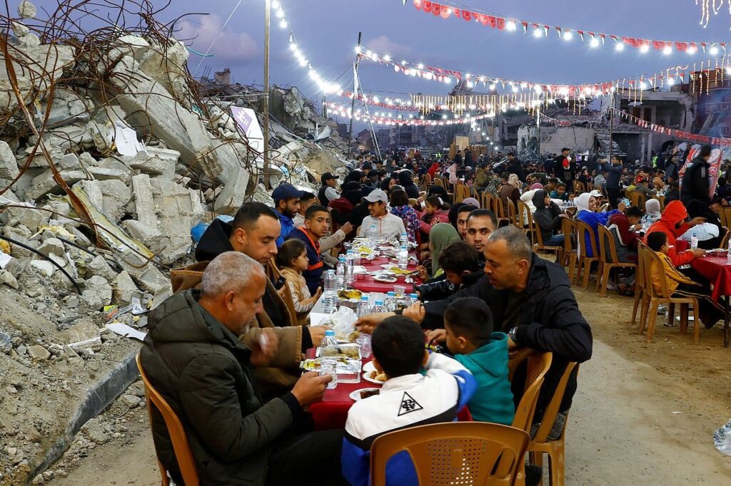 Ramazan’ın en dokunaklı sahnelerinden biri, Gazze’nin güneyindeki aileler oruçlarını kırmak için toplanırken yüzlerce metre uzanan uzun, kırmızı kaplı masaydı. 15 Aylık bir savaşın enkazı ve yıkımıyla çevrili olan bu aileler, yavaş yavaş hayatlarını yeniden inşa etmeye başlayabileceklerini ummaya devam ettiler.