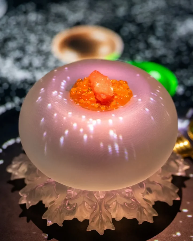 Konsept cesur, parlak ve küstah. Son derece sürükleyici görseller, 360 derecelik bir masa ve dijital sanat tam anlamıyla etrafınızda ortaya çıkıyor ve bu sadece başlangıç. Ancak benim için Krasota’yı diğerlerinden ayıran şey, yemeğin asla tiyatroya ikincil hale gelmemesidir. Tam bir incelikle onu yönlendirir.