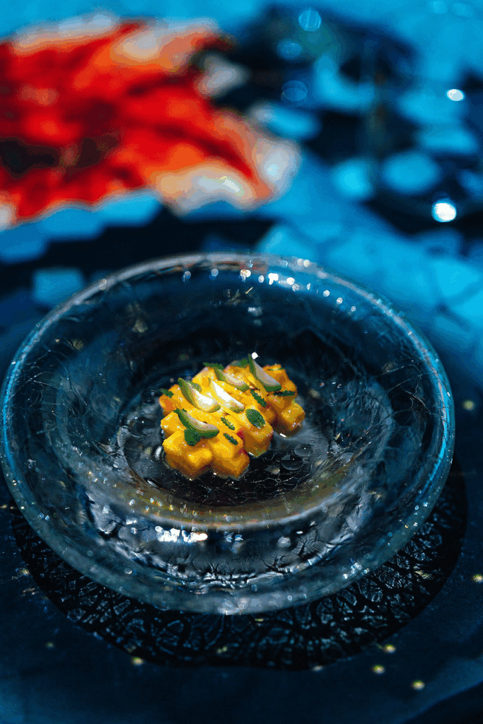 Son üç kurs heyecan verici bir dönüş yaptı, vibe düşündürücüden iyimser, heyecan verici ve — mümkünse — duyuları daha da çekici hale getirdi. Cyberpunk’a girerken, canlı müzik, neon görüntüler ve kışkırtıcı kaz ciğeri burgeri duyuları uyum içinde uyandırdı. Yapay Zeka kursu, konukların ‘Matrix’i deneyimlemelerine, insanlığın teknolojiye olan son aşırı ilgisini ve dolayısıyla ona olan güvenimizi yakalamalarına olanak tanıdı. Gösterinin bu bölümünde bize ‘AI bıldırcın turtası’ ikram edildi. Bu kavram, son kursa — Sonsuz Yaşama – güzel bir şekilde yol açtı. Bu ders, insanlığın teknoloji, doğa ve kişisel öz arasındaki yüce dengesini öngören yapay zekaya karşı katartik bir kontrpuan olarak öngörülmüştür. Bu konseptle mango ve feijoa ile servis edilen dokusal olarak eşsiz bir matcha dondurması verildi.