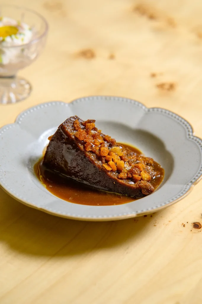Keyif aldığım daha büyük yemeklerden geçmeden önce, gösterinin yıldızı olarak gerçekten öne çıkan bir menü öğesi var: hurma bonbonları. Sadece vay canına – bazılarına kafa karıştırıcı; Bana göre mükemmellik. Bunlar, eski usul haşlanmış tatlıya benzeyen, ancak kremsi, tatlı ve tuzlu bir rüya gibi tadı olan şeyi yaratmak için tekrar tekrar tuzlanmış Fransız tereyağıyla kaplanmış, sıkıştırılmış Medjool hurmalarının mükemmel şekilde oluşturulmuş kareleridir.