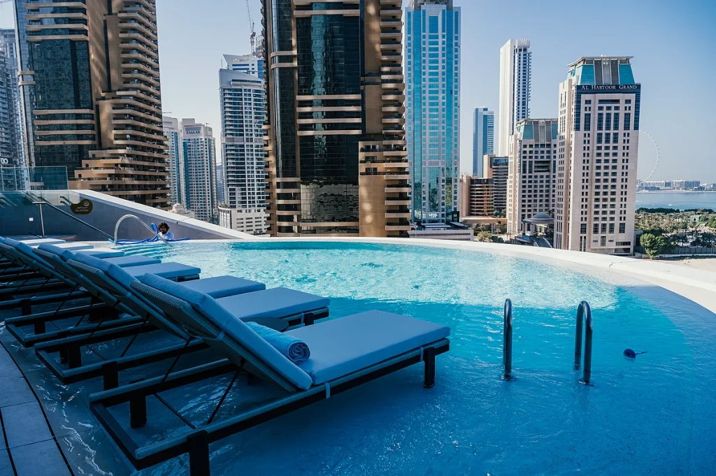 Dubai’nin tadını çıkarmak için konukların dışarı çıkmasına gerek yok. Odada, havuzda veya bir restoranda oturabilir ve hemen hemen tüm şehri bir kerede görebilirsiniz.