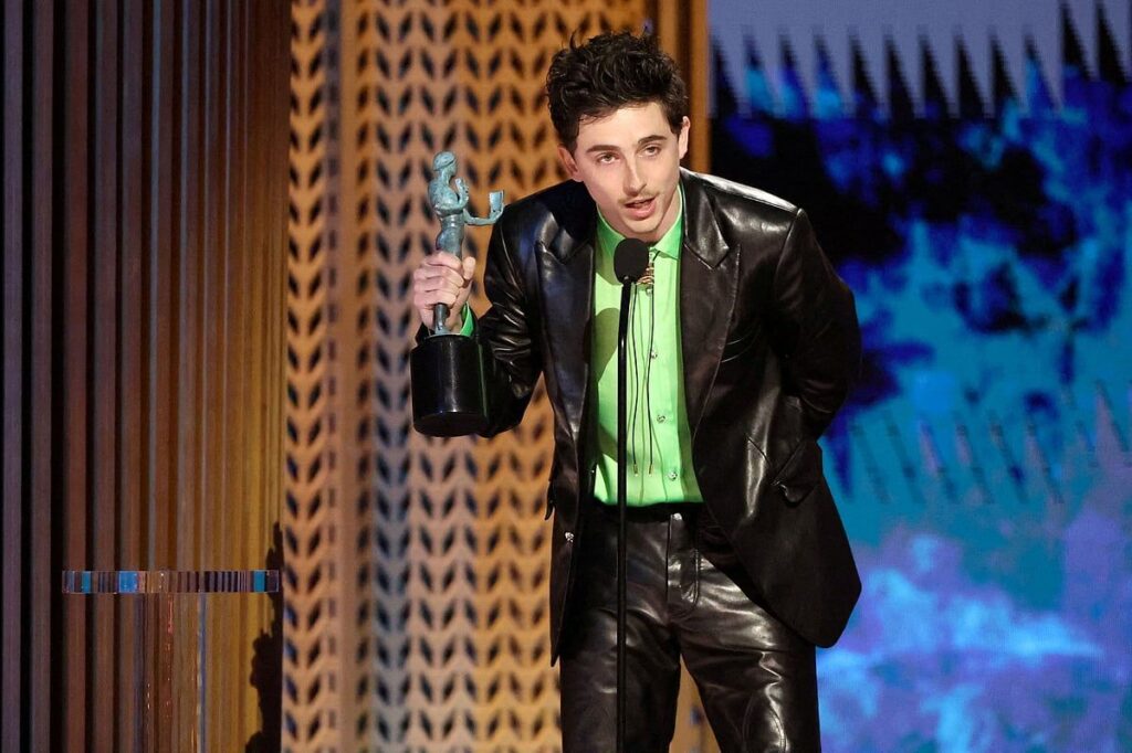 Chalamet, ‘A Complete Unknown’da müziğe girmeye çalışmak için New York’a geldiğinde genç bir Dylan’ı oynadığı için en iyi film erkek oyuncu dalında SAG ödülü’nü kazandı.