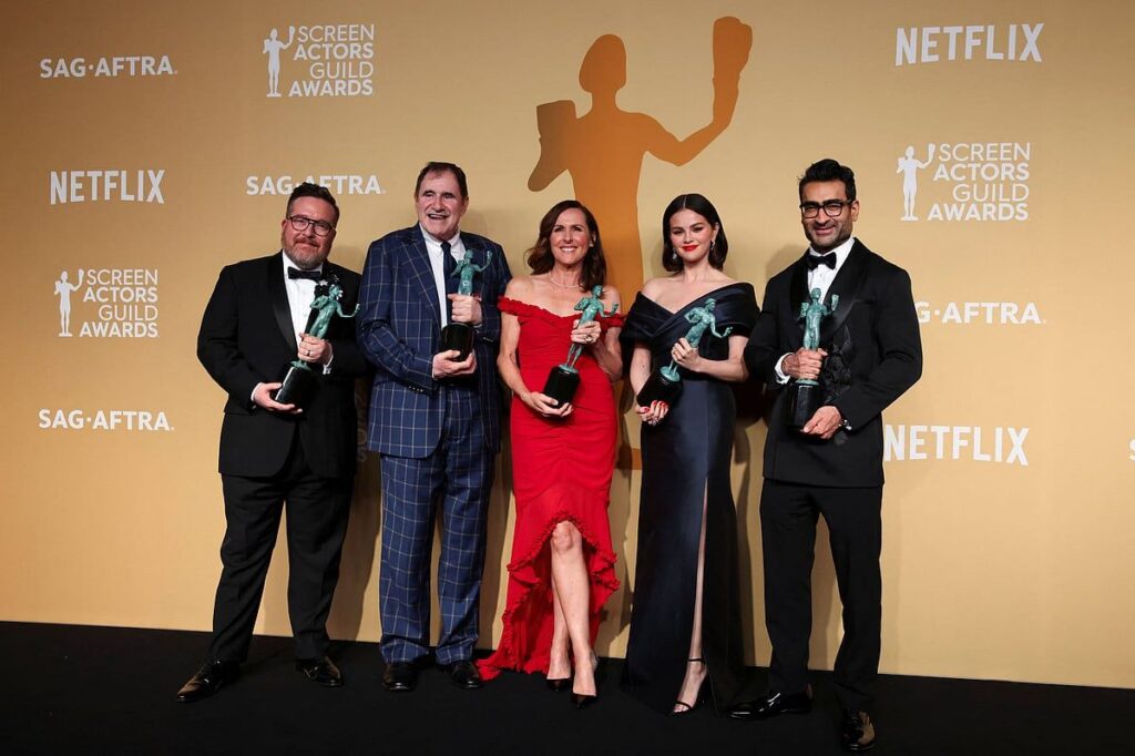 Televizyon ödüllerinde, imparatorluk Japonya’sındaki siyasi entrikaların hikayesi olan fx’in ‘Shogun’unun kadrosu, bir dramada en iyi topluluk seçildi. ‘Sadece Binadaki Cinayetler’, Selena Gomez, Martin Short ve Steve Martin gibi yıldızlar için bir komedi dizisinde en iyi topluluğu kazandı.