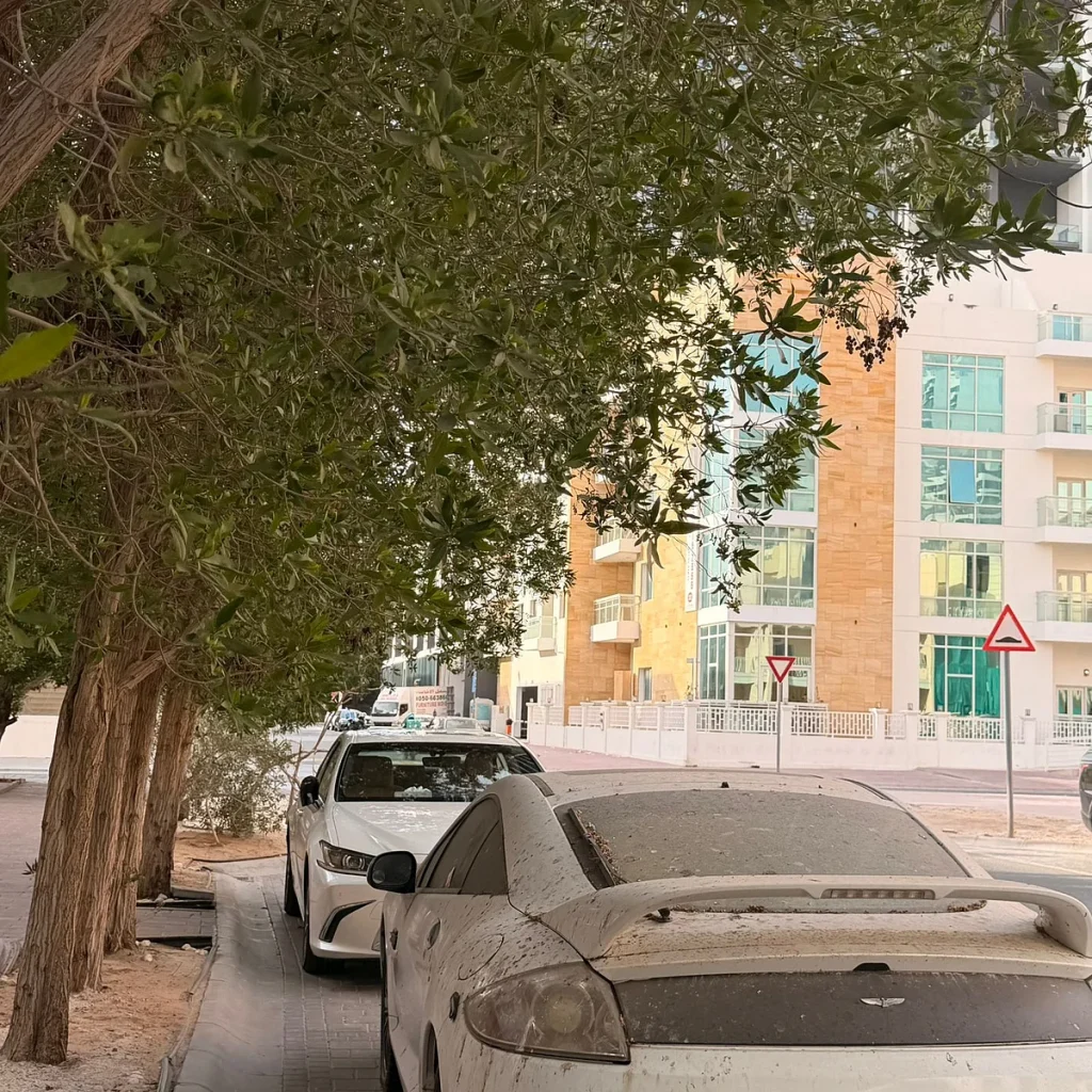 Khaleej Times ayrıca mahallede park etmiş birkaç terk edilmiş aracı da gözlemledi.