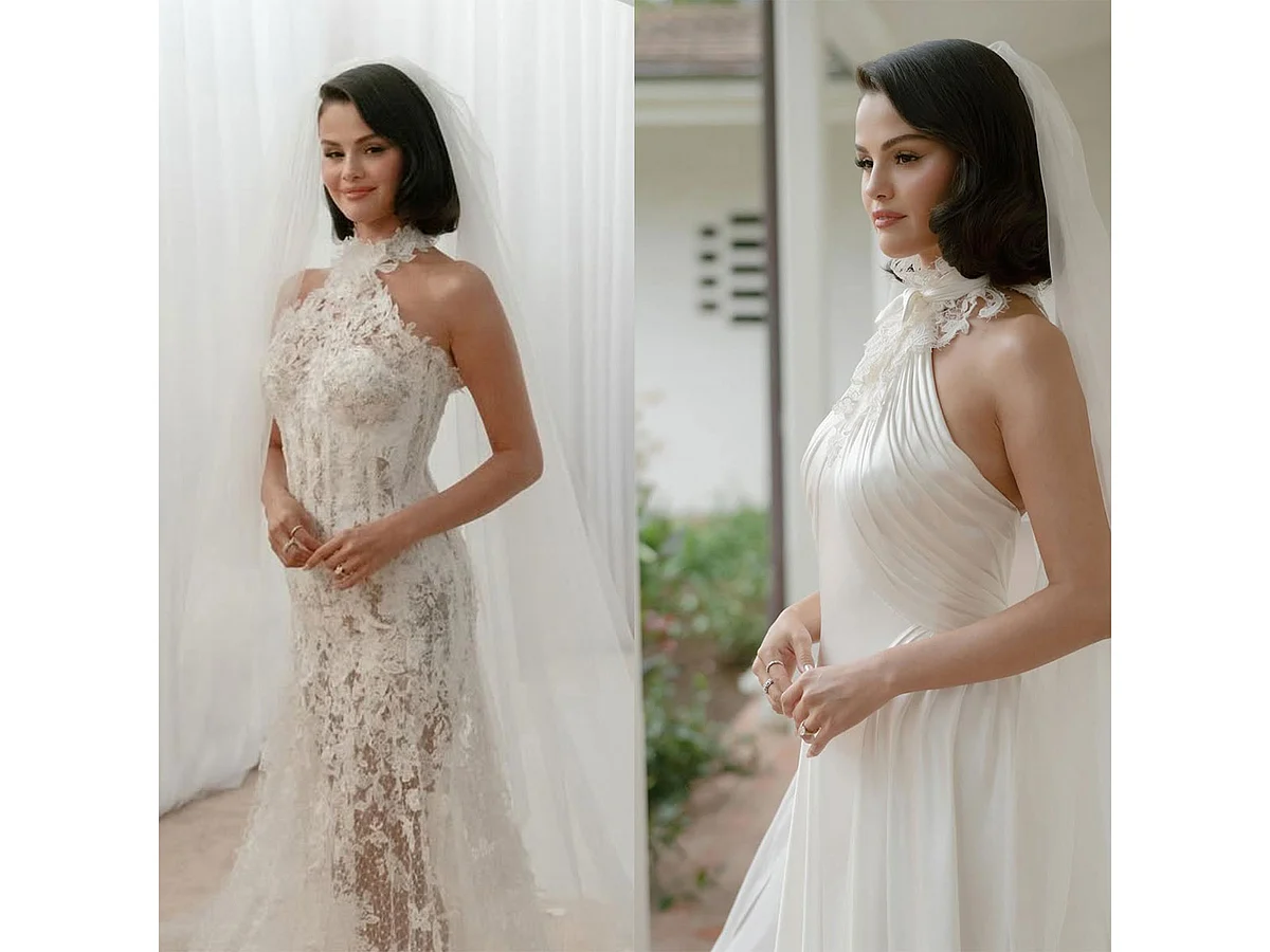 İnstagram”a gitmek, Selena bir dizi fotoğraf paylaştı, kocasıyla birlikte çarpıcı Ralph Lauren gelinliğinde onu içeren. Ayrıca, sevgiliye yakasıyla gelen eski beyaz bir elbise giyerken dans pistinden görünmeyen bir resme de yer verdi.